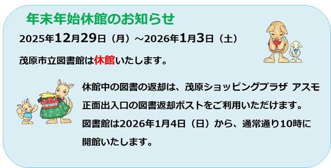 | 茂原市立図書館公式YouTubeチャンネルをオープンしました。 https://www.youtube.com/@mobara_library |